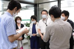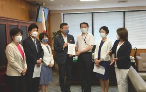 8月5日 共同会派「立国社」の厚生労働部会は5日午後、厚労省に介護報酬・診療報酬等の特例の自己負担増分の公費負担を求める要望書を提出しました。